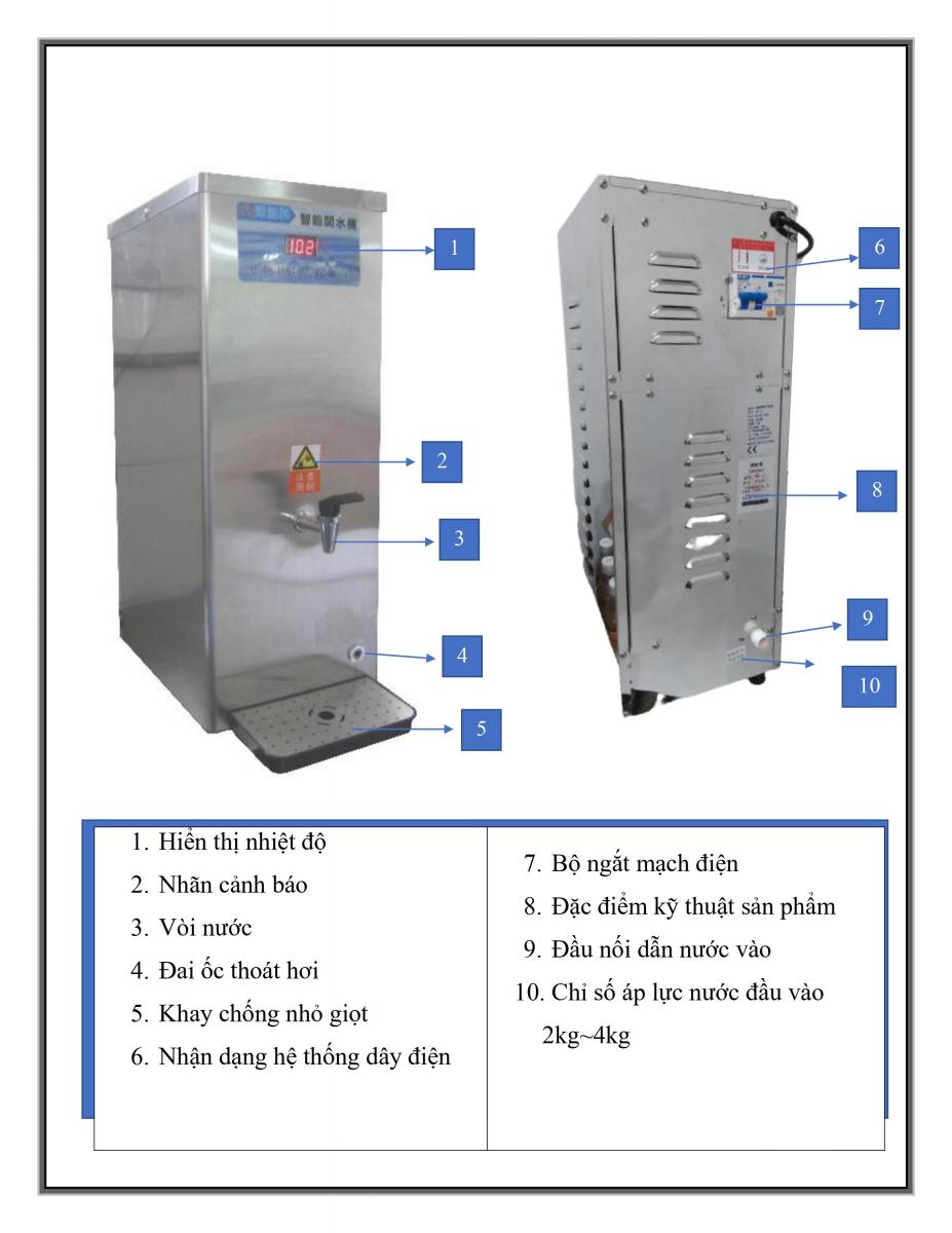 1. Máy này cung cấp nước nóng tự động không cần bổ sung nước sau khi lắp đặt.