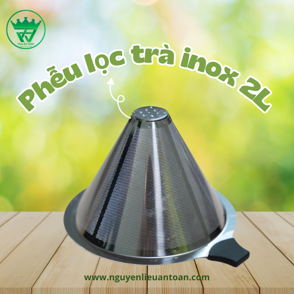 Phễu lọc trà inox 2L được làm từ inox không gỉ, đảm bảo độ bền cao, không bị ăn mòn hay phản ứng hóa học khi tiếp xúc với nước nóng và trà. Chất liệu inox cũng giúp dễ dàng vệ sinh, không bám bẩn và không giữ lại mùi vị của trà sau mỗi lần sử dụng. Đây là lựa chọn lý tưởng cho những ai yêu thích pha trà nhưng muốn giữ trọn vẹn hương vị tinh khiết của từng loại trà khác nhau.